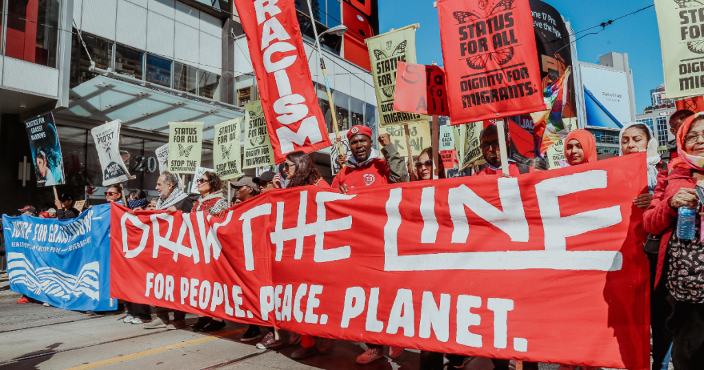 We will continue to build power alongside labour unions, climate justice organizations, housing justice and anti-war movements to reject austerity politics that blames migrants while funding surveillance and war.